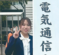通学時間が長く、部活動にも参加していたので、隙間時間を活用して勉強していました。苦手分野のプリントや入試問題、英語の添削など、自分からお願いすれば全力でサポートしてくれる学校です。自宅の洗濯機が壊れたことをきっかけに、家電や制御に興味を持ち、電気通信大学が志望校に。公募推薦での受験でしたが、塾には行っていなかったため、志望理由書の添削や面接練習など担当の先生の支えが心強く、感謝しています。