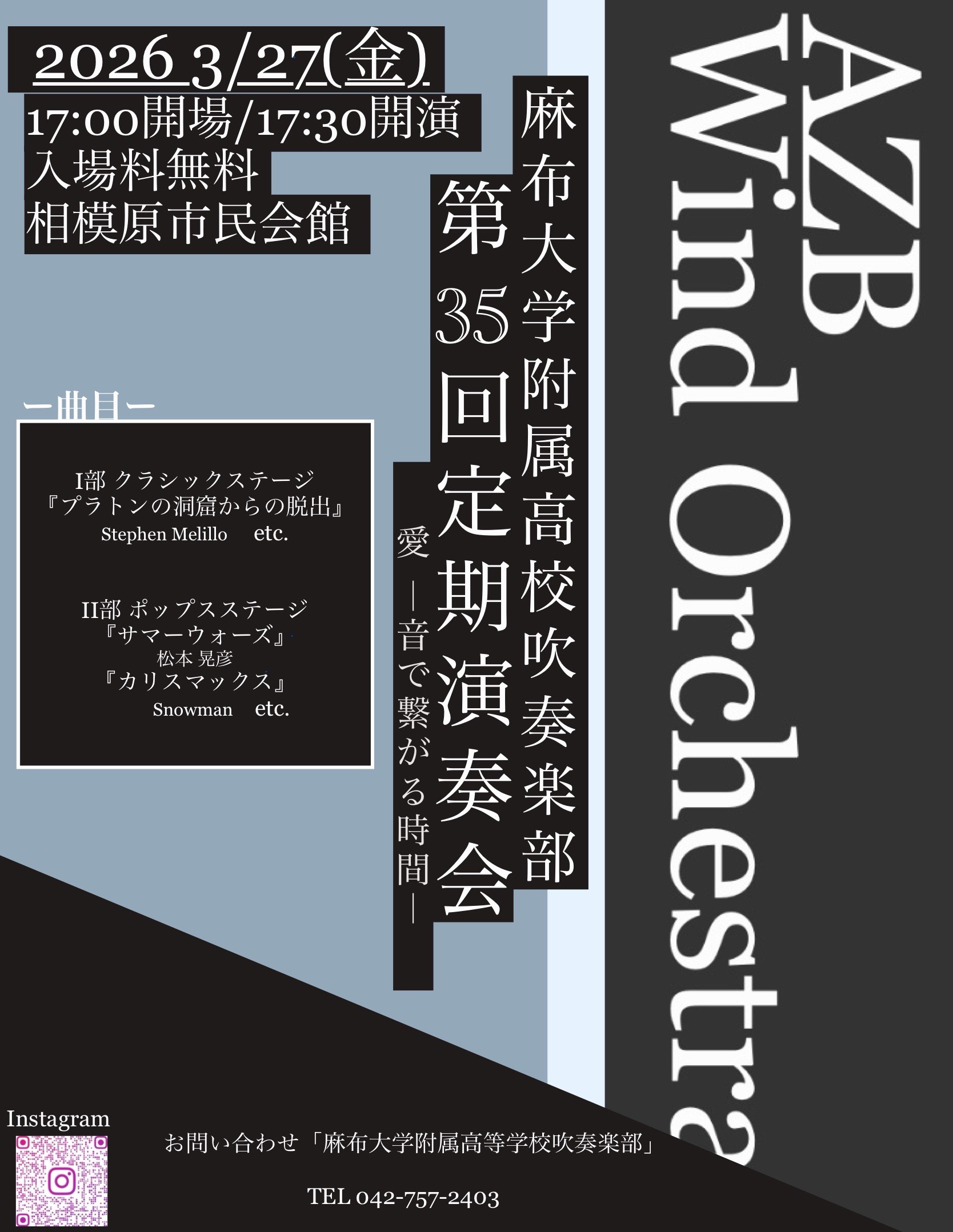 3/27(金) 吹奏楽部定期演奏会のお知らせ